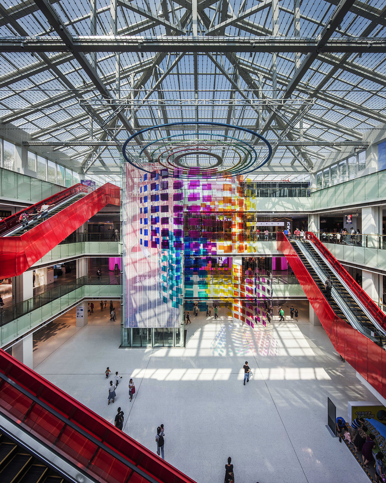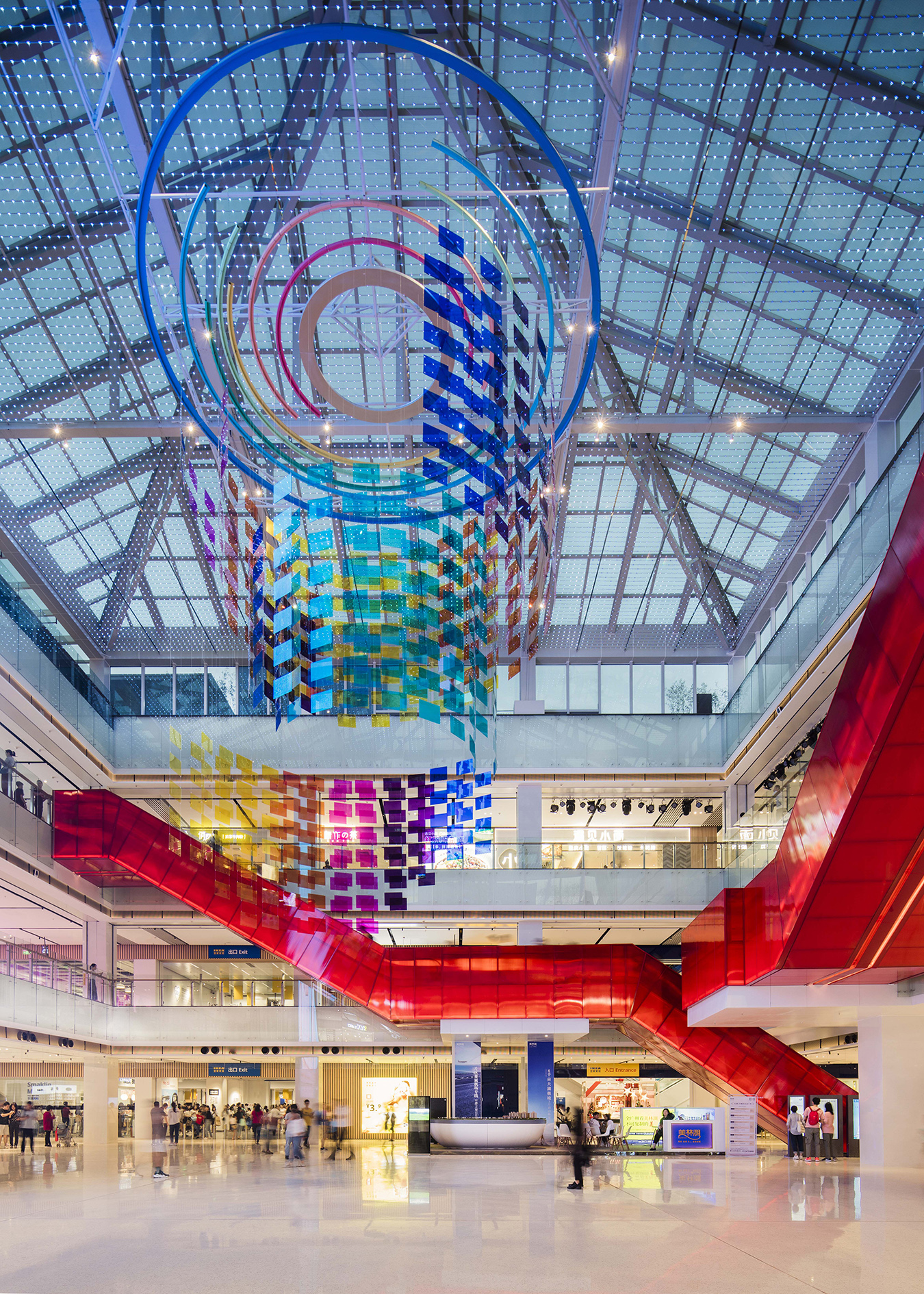 美林M·LIVE天地总规划建筑面积约为28万㎡,开业一期约8万㎡,定位一站式家庭休闲购物中心,项目不仅为广大市民提供一个满足日常所需、居家购物、休闲娱乐的大型休闲活动场所,同时也将成为国内首家同时拥有山姆会员店和宜家家居两大国际商业巨头的购物中心。立面以LED束光板、玻璃、幕墙、轻量高质铝板相互穿插,构成了解构美感。内部色彩主导空间组织,主中庭形成的永恒全天候缤纷烟火结构造型,与顶面的玻璃和阳光形成绝妙搭配。其他中庭也有繁星、云彩等主题对天花进行延展设计。