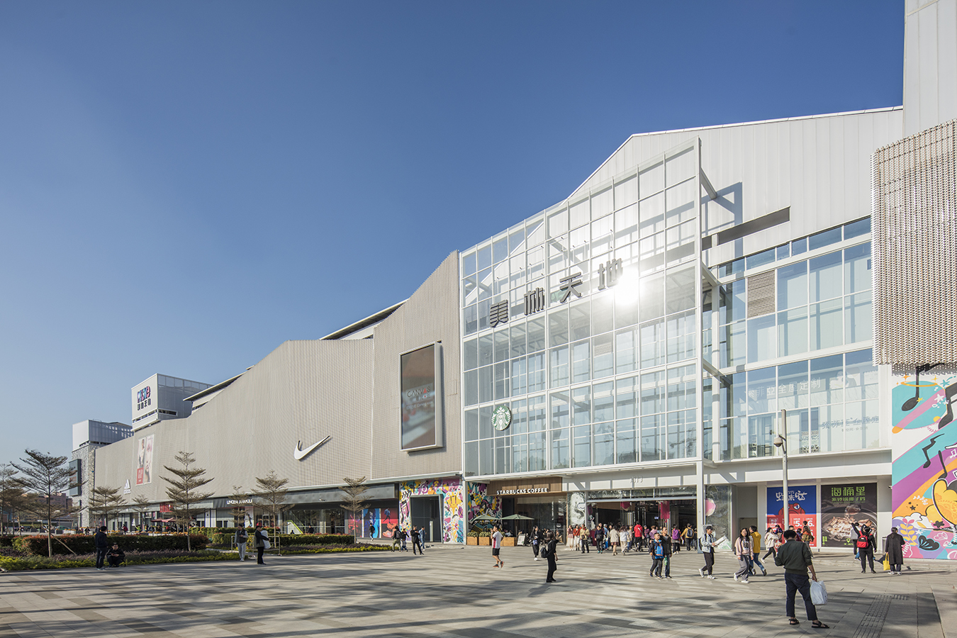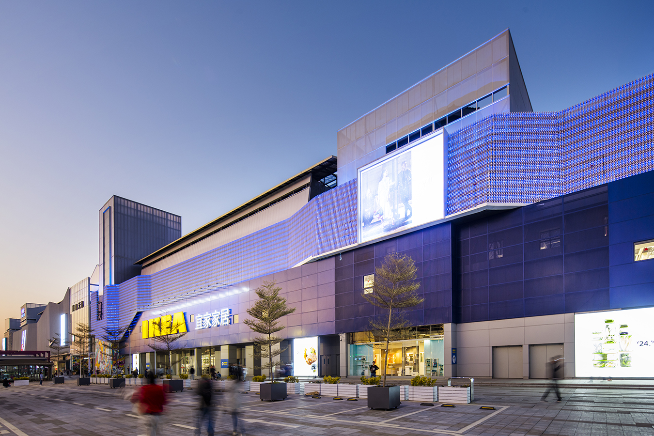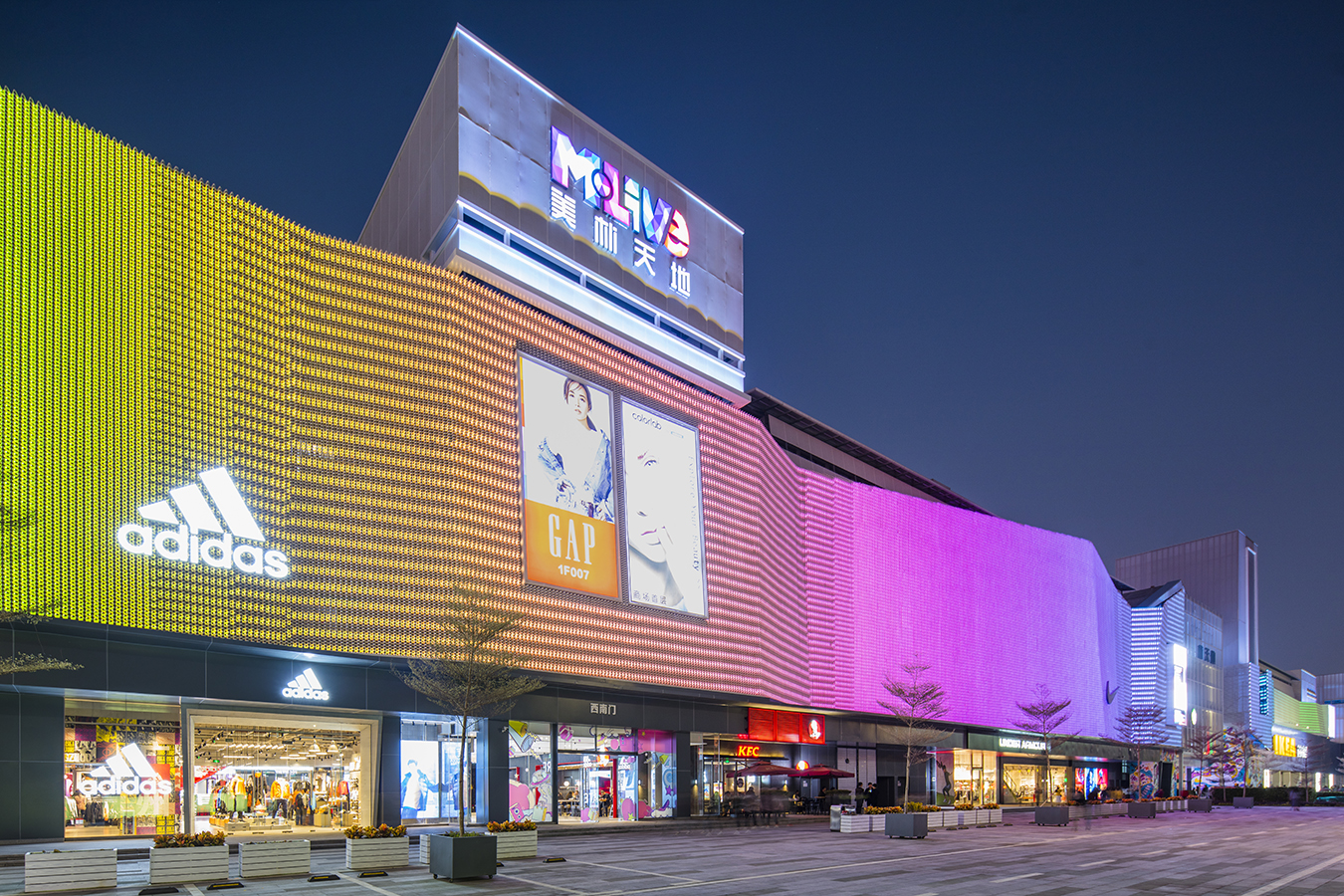 美林M·LIVE天地总规划建筑面积约为28万㎡,开业一期约8万㎡,定位一站式家庭休闲购物中心,项目不仅为广大市民提供一个满足日常所需、居家购物、休闲娱乐的大型休闲活动场所,同时也将成为国内首家同时拥有山姆会员店和宜家家居两大国际商业巨头的购物中心。立面以LED束光板、玻璃、幕墙、轻量高质铝板相互穿插,构成了解构美感。内部色彩主导空间组织,主中庭形成的永恒全天候缤纷烟火结构造型,与顶面的玻璃和阳光形成绝妙搭配。其他中庭也有繁星、云彩等主题对天花进行延展设计。