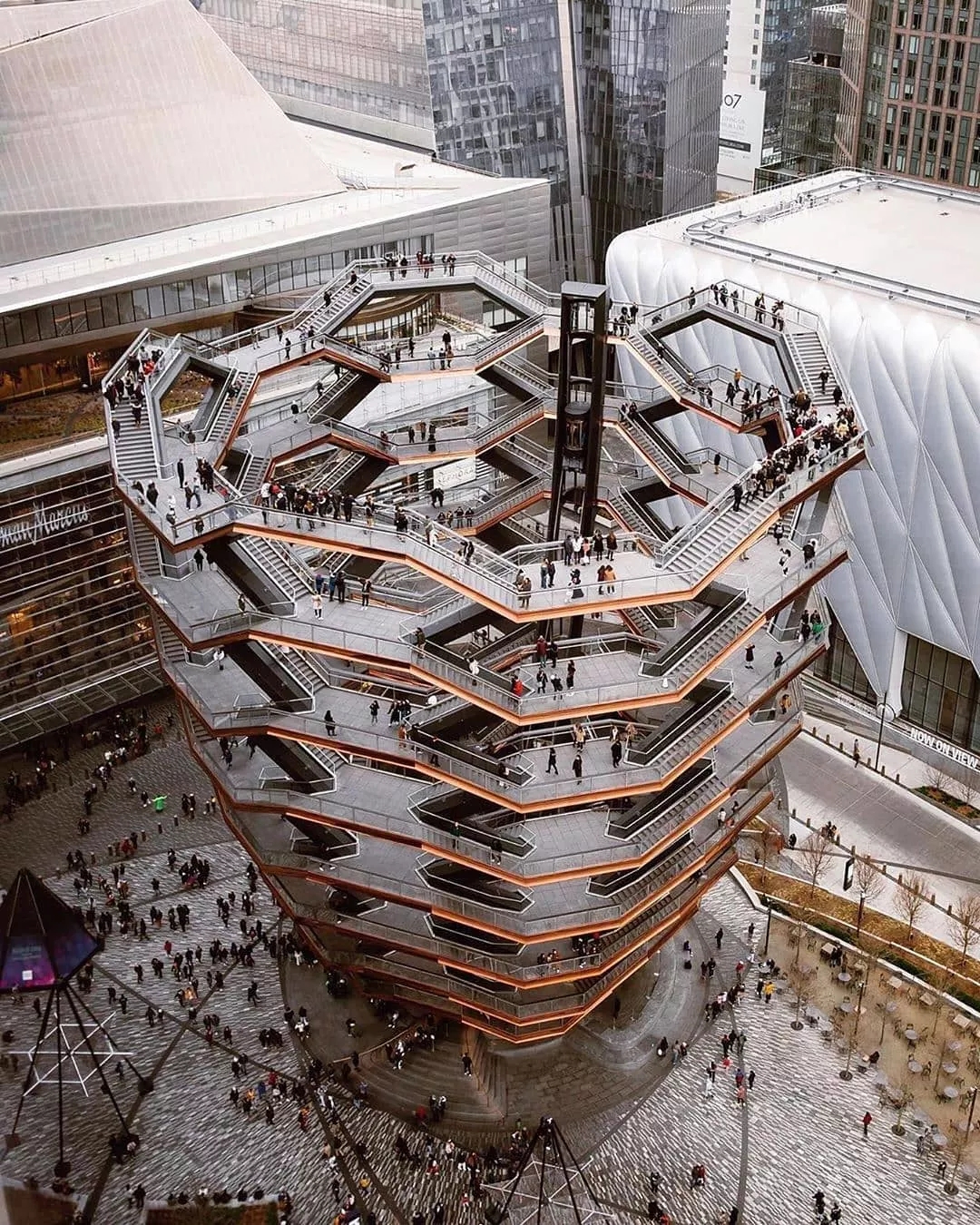 而去年3月开业的总投资200亿美元的哈德逊城市广场(Hudson Yards), 无论是被称为是一个伟大的社区,还是富人的游乐场, 它都重新定义了纽约城市新的中心,起到刺激经济,激活城市活力的作用, 为城市注入新事物创造新引力。150英尺的巨型雕塑Vessel, 带有会移动的白色屋顶的The Shed艺术中心,西半球最高的城市观景台无疑让其成为全世界的网红打卡地标。7层高的购物中心包括占地190,000平方英尺的高端百货Neiman Marcus和占地35,000英尺的西班牙美食广场、100多家商店和各式餐厅成为纽约及来自全球的人们热衷的最新吃喝玩乐之地。