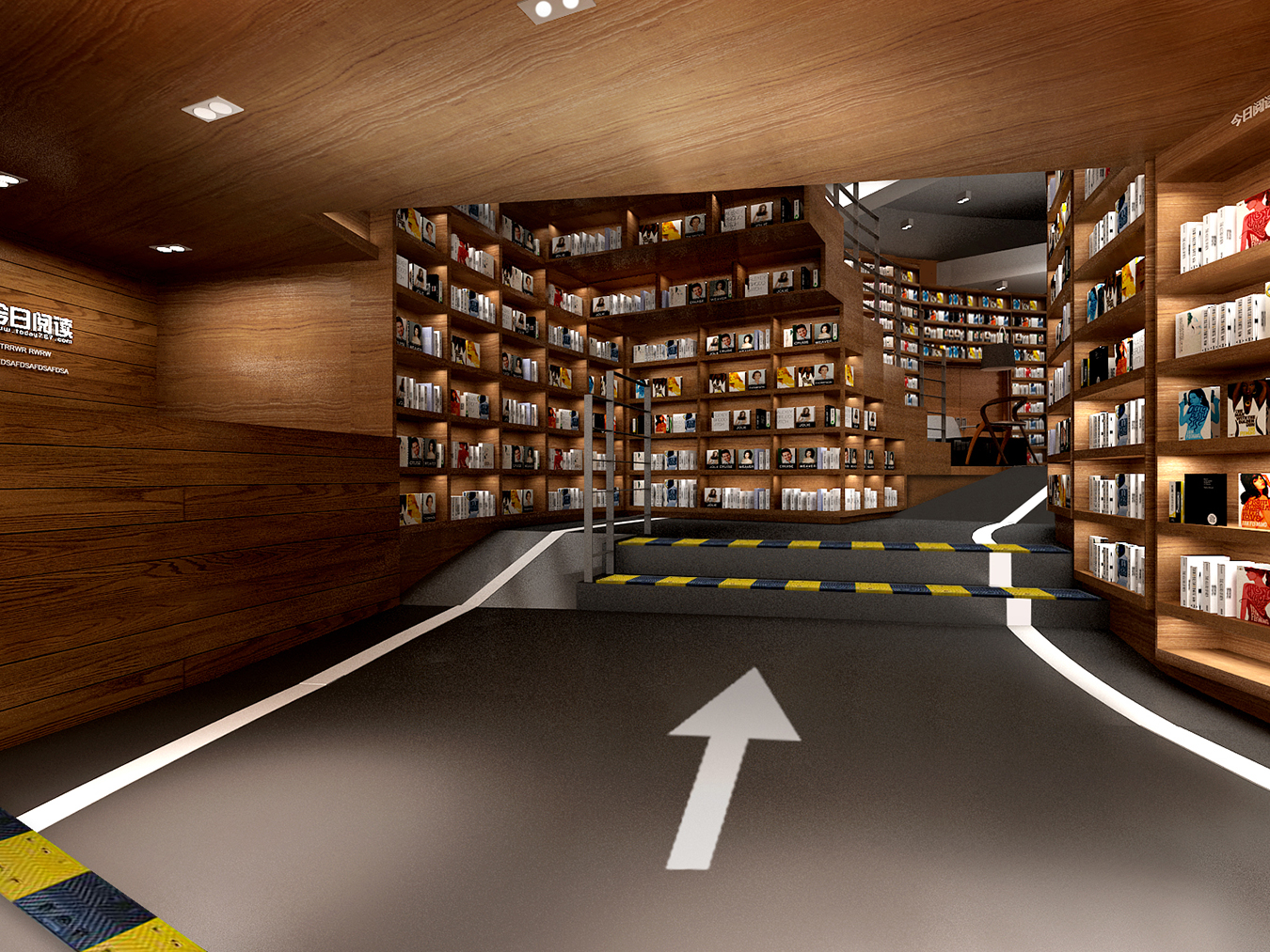 项目根据天津大悦城5号车库的独特性,两层并没有被阻隔,有通透的整体感,让上下两层空间浑然一体,视野开阔书架密集,秉承了坚持本源的匠人精神,前台和书架基本是原木建材,体现出绿色环保、回归自然的设计。通道设计成出入车道,与5号车库想带给大家传递的“车库文化”交相呼应。